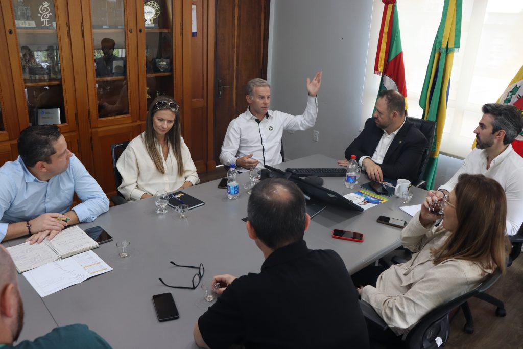 A reunião na Prefeitura de Farroupilha contou com a presença de Jonas Tomazini, Prefeito de Farroupilha, Eduardo Stockmanns Henz, Secretário de Desenvolvimento Econômico e Inovação, Nestor Zanonato Filho, Diretor Geral da Secretaria de Urbanismo e Meio Ambiente, e Cristiane Girelli, Diretora Regional da Federasul.