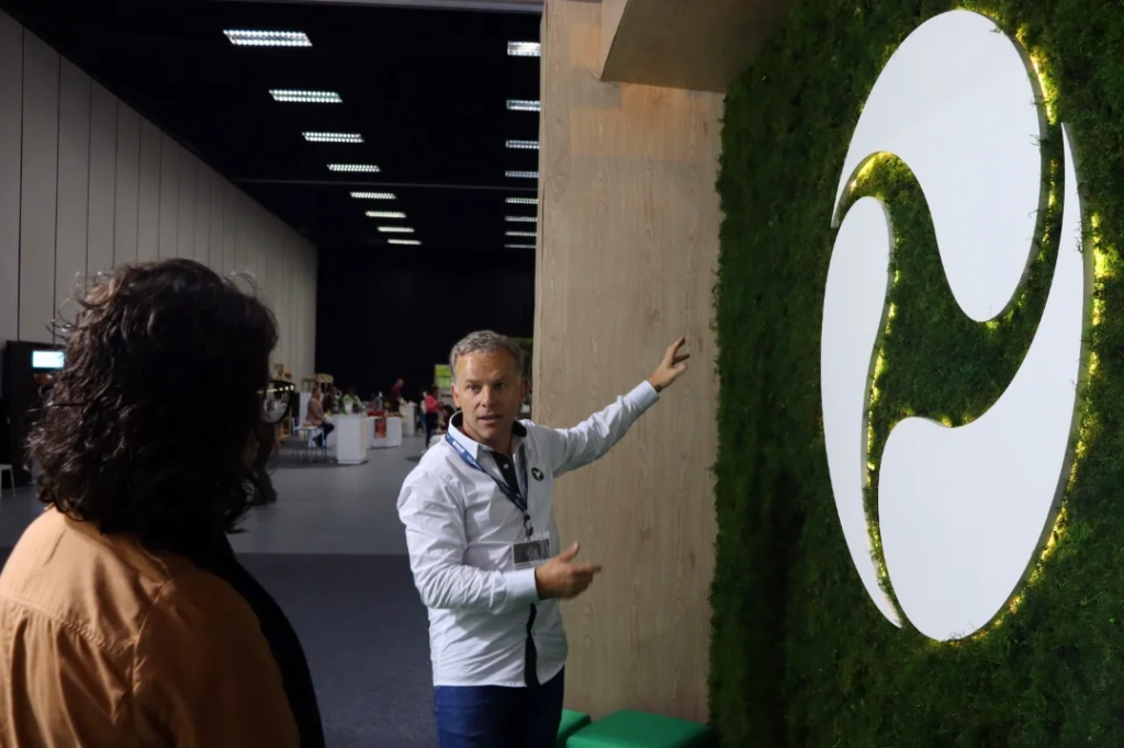 Um painel de musgo preservado também foi construído para montar um espaço “instagramável” no estande, utilizado nas fotos com os visitantes. O painel foi feito pela Cooltive Revestimentos Naturais e já foi instalado na recepção da Biosys, seguindo o conceito do estande sustentável e reaproveitável, podendo ser desmontado e utilizado em outras feiras e eventos.