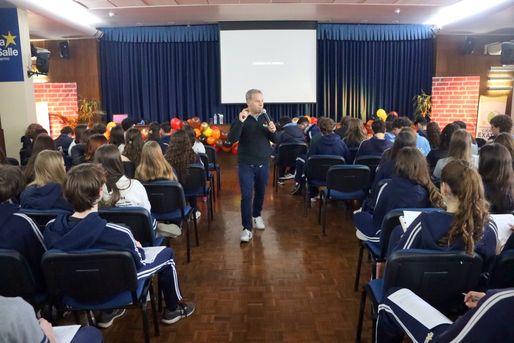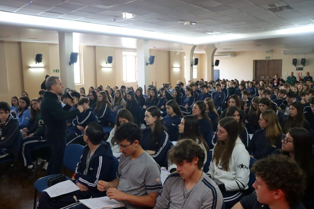 Os alunos do Ensino Médio da trilha de Ciências Exatas encheram o auditório da escola e juntos entenderam a tarefa que é receber um planeta Terra que precisa de atenção para que a geração deles e as próximas possam viver melhor.