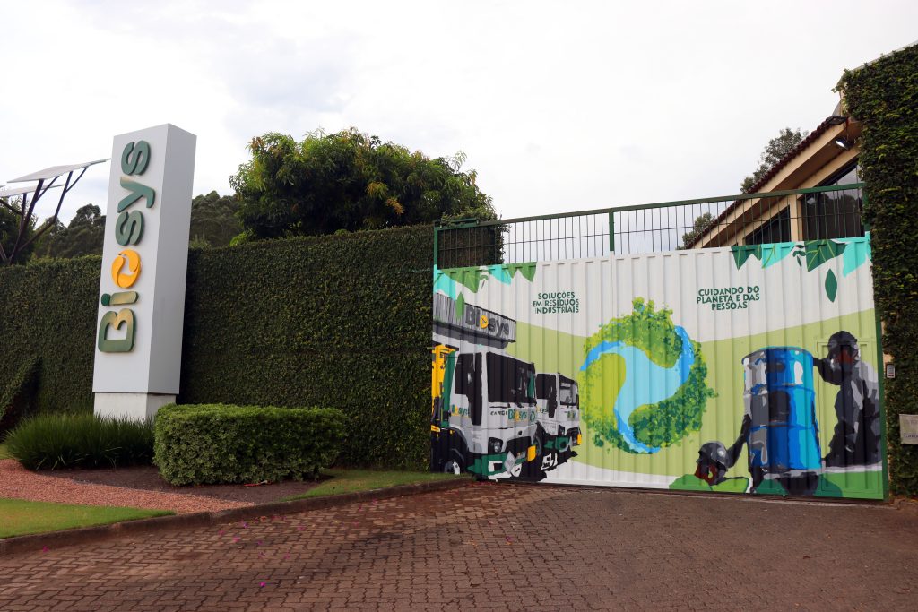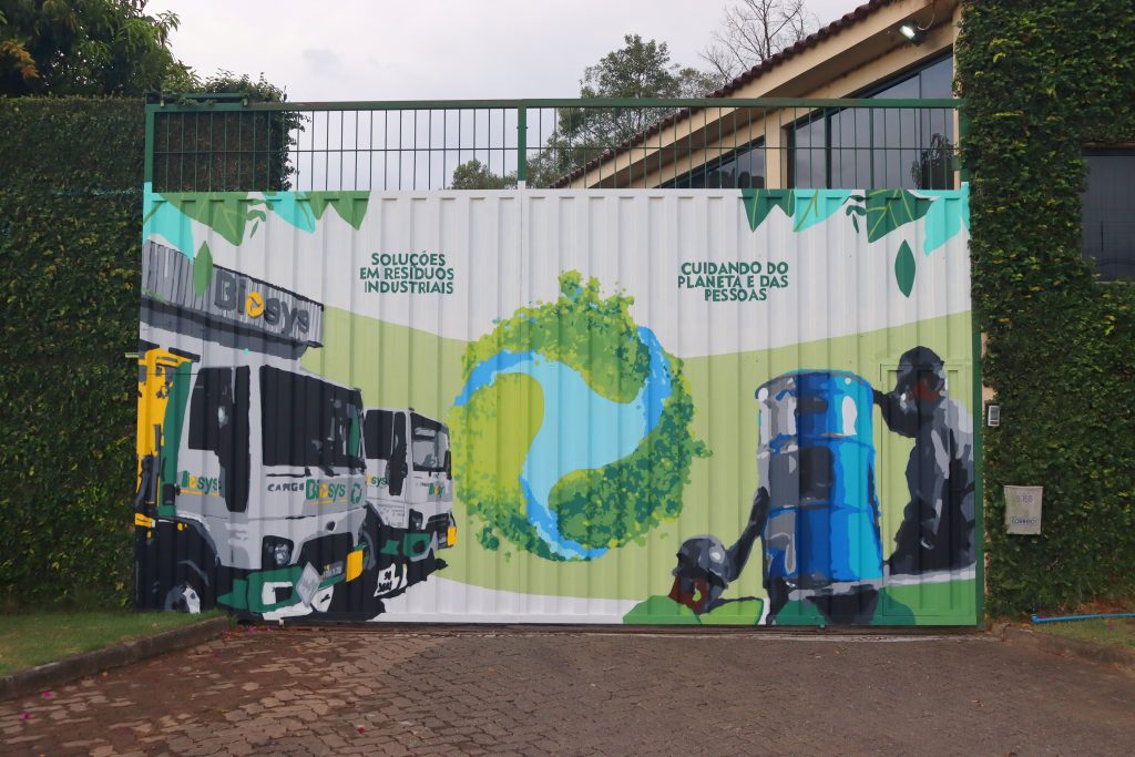 Tem mais uma obra de arte na nossa fachada! Quem visitou a Biosys recentemente já percebeu uma mudança: nosso portão de acesso à empresa foi pintado pelo artista plástico Gustavo Gomes e agora ilustra o trabalho de soluções em resíduos industriais realizado pela Biosys.
